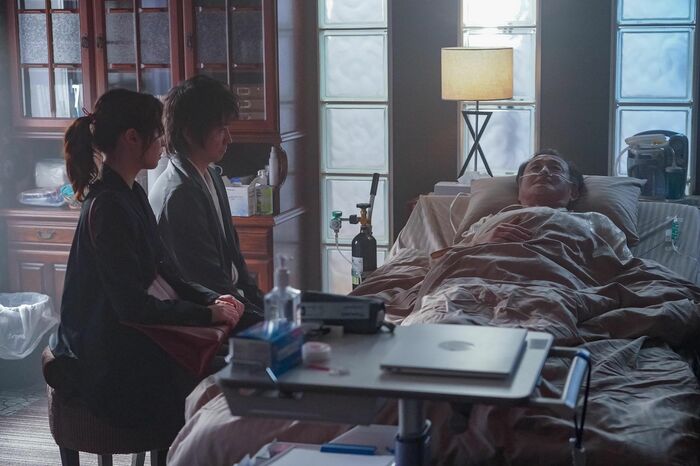 ベッドに横たわり、チューブに繋がれた大隈を見て驚く興玉。容体は悪く、もう長くは生きられないという。