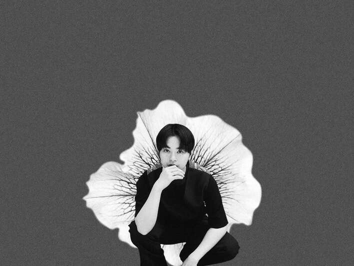 投稿では、1輪の咲いた花の前にしゃがんでいる瀬戸さんのモノクロ写真を公開。