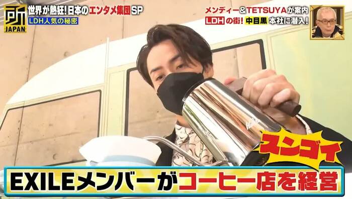 LDH本社のある中目黒には、TETSUYAがプロデュースする珈琲店のほかにも、LDHがプロデュースする飲食店や、NAOTO(EXILE/三代目J SOUL BROTHERS)がプロデュースするアパレルショップ「STUDIO SEVEN」などが多数存在。中目黒の街をパフォーマンス以外でも熱狂させていた。