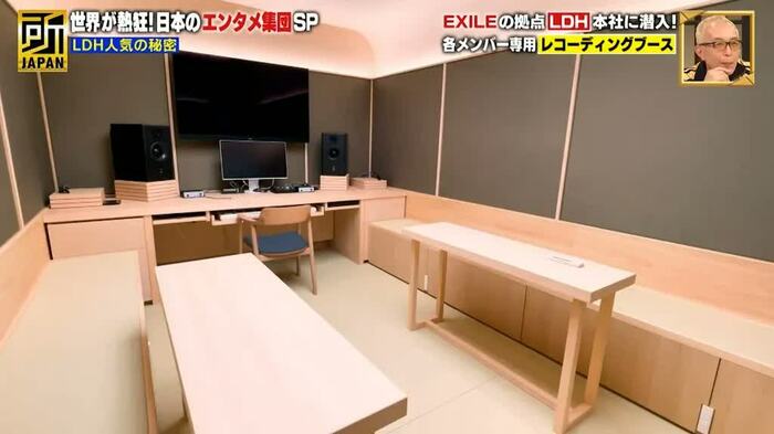 続いて、登坂広臣(三代目J SOUL BROTHERS)専用のレコーディングブースも紹介。こちらは、シンプルでシックなデザインで統一されている。