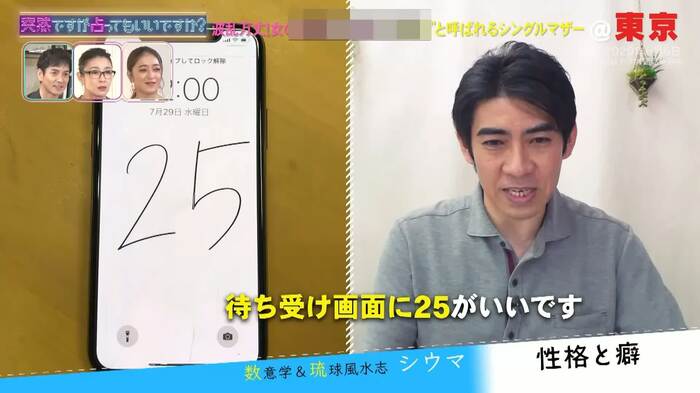 “物忘れをなくすための対策”として、シウマは「携帯の暗証番号の数字の合計を“25”にするといいですが、それを忘れられても困るので、数字の25が書かれた画像を壁紙に設定するといいです」とアドバイスした。