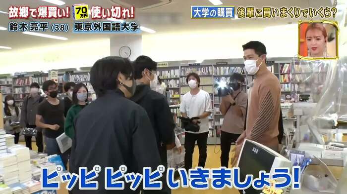 ここで鈴木は、近くにいた学生たちに「なにか買いたいものありませんか?」と声をかけ、購買「ハッチポッチ」で爆奢りする作戦へ。鈴木が「ピッピ、ピッピいきましょう!」と呼びかけるなか、学生が自分の欲しいものを次々とレジへ持ち込み、バーコードがスキャンされた商品をそのまま持って帰る(※精算は鈴木が最後にまとめて行う)という異様な光景が繰り広げられた。