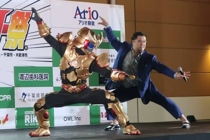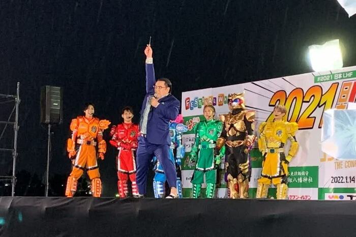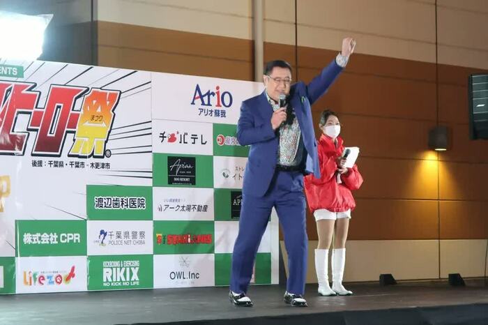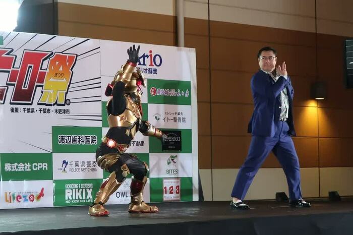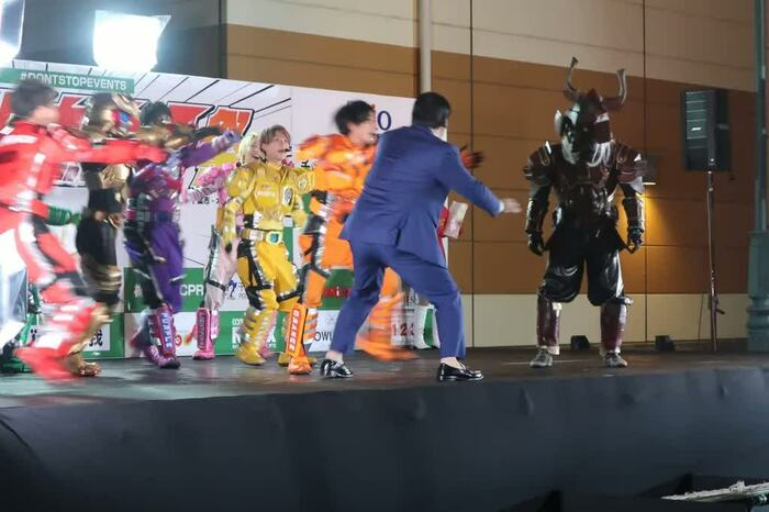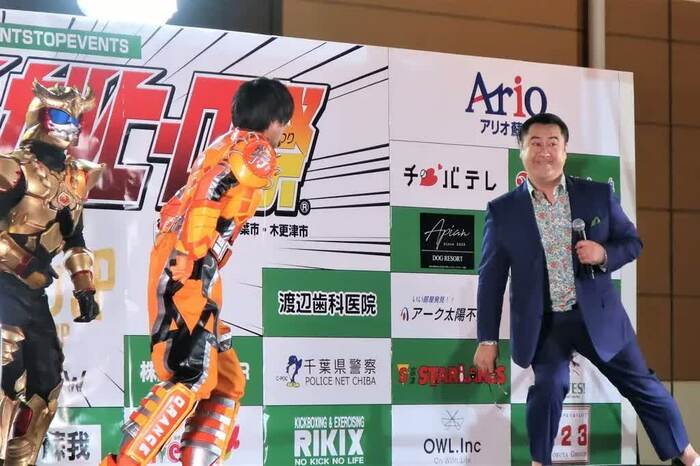 「英雄編」というタイトルからあやかり、60団体・201ものヒーローが参戦するビッグイベントとのコラボが実現。会場に700名近い観客が集まった本イベント。朝から熱いヒーローバトルが繰り広げられてきたステージに、観客にサプライズで五十嵐が壇上に登場すると、大きな拍手とどよめきが起った。