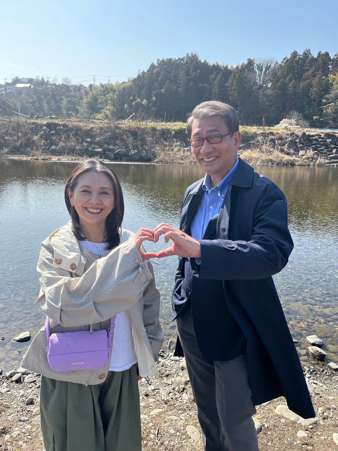 2人は片手ずつ差し出し、ハートを作っています。投稿文には「実は千明(小泉さん)の提案なんです」と裏話も。こちらも青空と透き通った川をバックに、ステキな笑顔を見せる2人が印象的な1枚になっています。