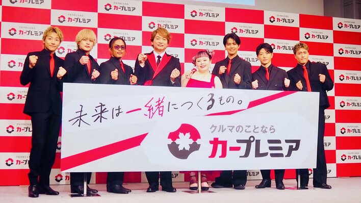 「カープレミア」の新CM発表会が5月21日に都内で開催され、香取慎吾さんとGENERATIONS from EXILE TRIBE、そして、新たにCMキャラクターに加わった渡辺直美さんが登場しました。