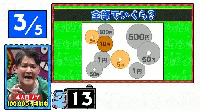 調子良く正解を重ねたノブだったが、コインのイラストがいくらなのかを答える問題になると大混乱。