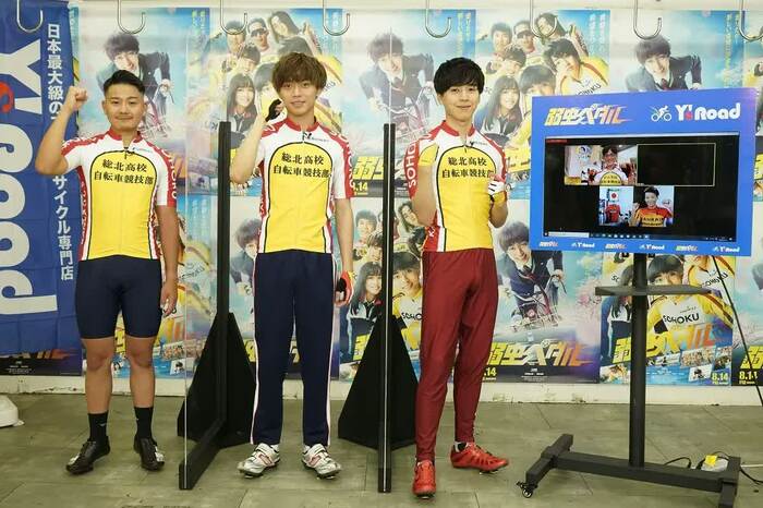 この日は、映画で自転車観衆を担当した元自転車プロロードレース選手・城田大和、「弱虫ペダル」の生みの親でありロードレースチームの監督も務める渡辺航、ツール・ド・フランスとジロ・デ・イタリアを日本人で初めて完走したプロロードレーサーの新城幸也選手もオンラインで参加。