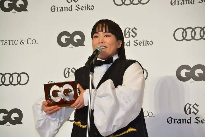 『R-1グランプリ2001』で優勝を果たし、アメリカのバラエティ番組『アメリカズ・ゴット・ア・タレント』に出演するなど、存在感を増し続けるゆりやんレトリィバァは「メン・オブ・ザ・イヤー・ベスト・コメディアン賞」を受賞。受賞の喜びを語っている最中に涙を拭く仕草をすると、顔を上げる際に目を二重にして取材陣の笑いを誘っていた。