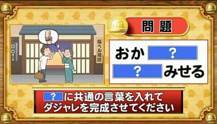 次は、ダジャレ穴埋め問題。「?」に共通する言葉を入れてダジャレを完成させてください。