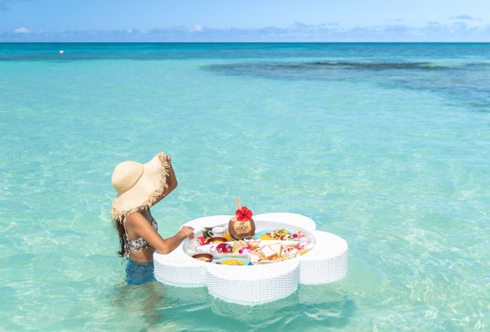 「オーシャンフローティングブレックファスト」は、与論島の清々しい朝の時間、ホテル直結のサンセットビーチに浮かべた大きなトレーに、彩り豊かな南国フルーツや沖縄・与論の地元食材や旬の食材を贅沢に盛り込んだ特製朝食を乗せ、海の中で楽しんでいただける唯一無二の体験です。