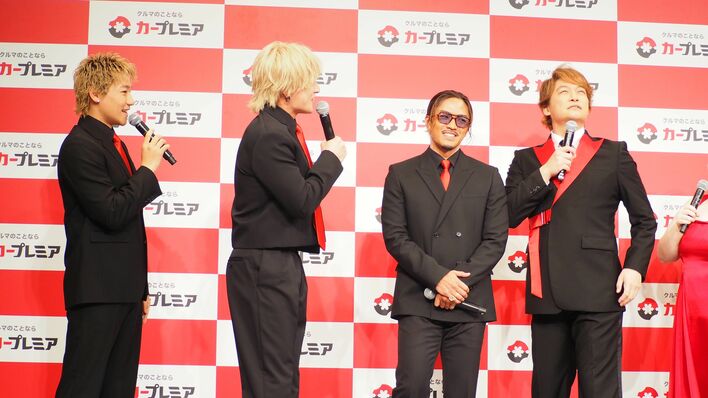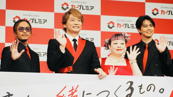 「カープレミア」の新CM発表会が5月21日に都内で開催され、香取慎吾さんとGENERATIONS from EXILE TRIBE、そして、新たにCMキャラクターに加わった渡辺直美さんが登場しました。