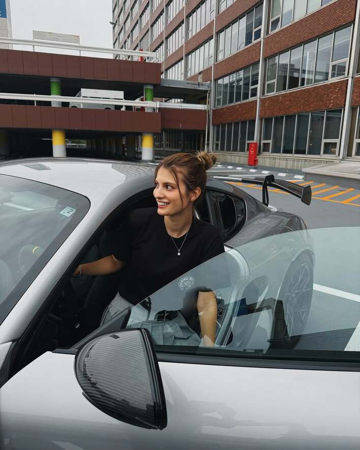 別の写真では、マギーさんの愛車だという「ポルシェ 718ケイマンGT4 RS」の運転席に笑顔で乗り込んでいる姿も披露。