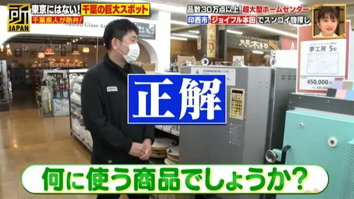 とにかく何でも巨大化させてしまう千葉県で、一番ホットな巨大施設はどこなのか?番組が注目したのは、「住みよさランキング」(東洋経済新報社調べ)で7年連続全国1位の印西市にある「ジョイフル本田 千葉ニュータウン店」。