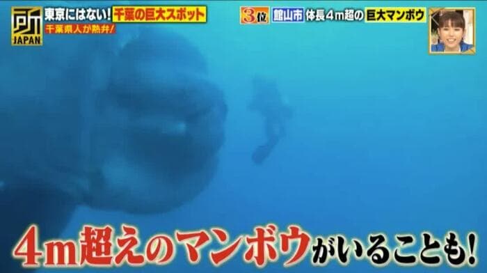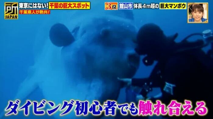 まずは、巨大な施設ベスト3を発表。3位にランクインしたのは、千葉県館山市にある波佐間(はさま)海中公園。文字通り広大な海の中にあるダイビングサービスで、海中には巨大なマンボウが。