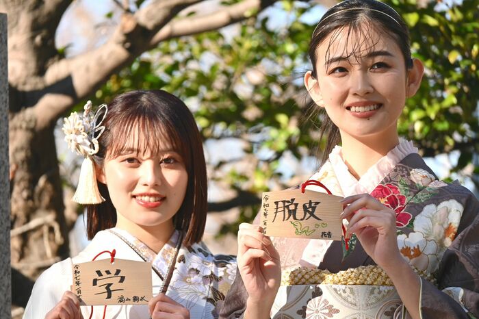 福山絢水さんは「学」。「今年は学びを深めて、自分の土台を高める1年にしたい。メイクイベントを今年も開催したい」と語りました。