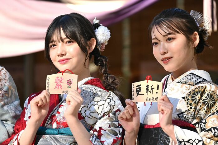 現在中学2年生の松尾そのまさんは「繋」で、「今までの自分を新しい自分に繋げ、新しいものを生み出せるように」。そして、古田愛理さんは「更新」で、「お仕事をくださる方に恩返しができるよう。アップデートした自分をお見せできるように」と力を込めました。