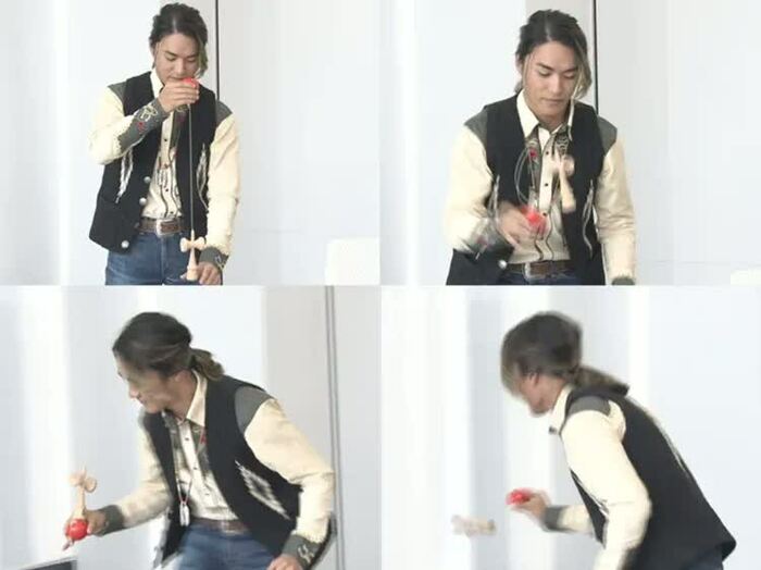 一方で、砂田はえくぼの深さが負けないと主張した。EXILE TRIBEの中で1番と言いたいところだが、「あ、でもTAKAHIROさん(EXILE)がいるか・・・」とえくぼのライバルを見つけ落胆。そこで『めざましテレビ』で毎度おなじみのけん玉パフォーマンスを披露してもらうと…。
