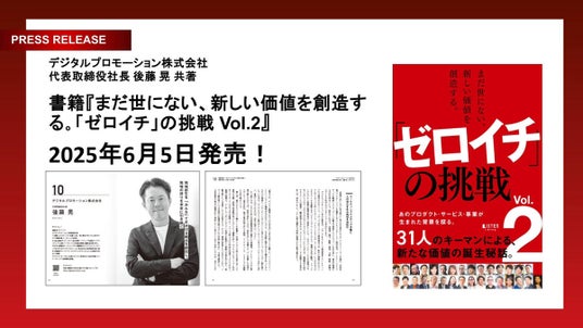 デジタルプロモーション株式会社(本社:神奈川県横浜市 代表取締役社長:後藤 晃)は、リスナーズ株式会社のプロデュースによる書籍『まだ世にない、新しい価値を創造する。「ゼロイチ」の挑戦 Vol.2』に共著者として参画し、同著が2025年6月5日にAmazon.co.jpより発売されることをお知らせいたします。