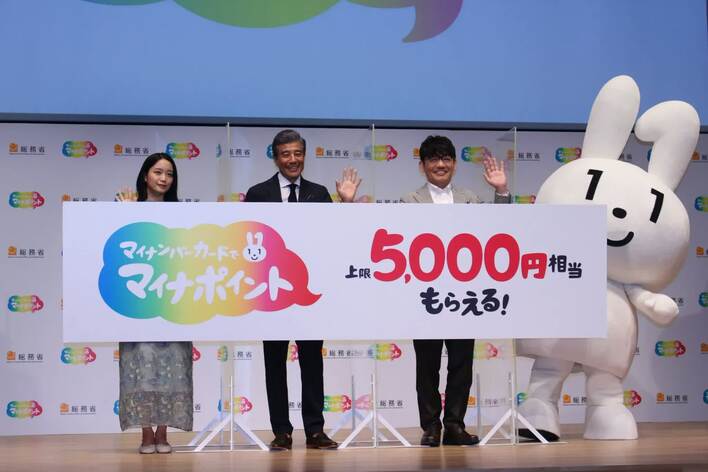 7月22日(火)、総務省主催による「マイナポイント事業 新CM発表会」が行われた。ゲストには新CMに出演する舘ひろし、深川麻衣、お笑い芸人の飯尾和樹(ずん)が登壇した。