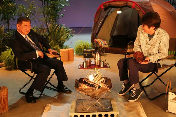 アイドル通としても知られる石破は、石橋とアイドルトークでも盛り上がる。