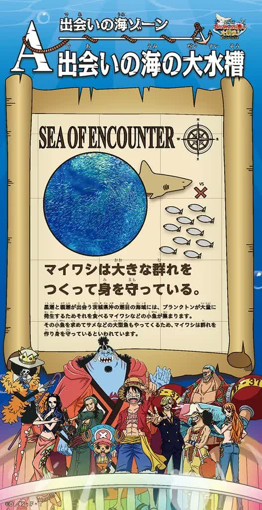 このイベントは、2021年にコミックス第100巻の発売ならびにアニメ放送1000回を迎えた『ワンピース』と、2022年に開館20周年を迎えるコラボ企画。海をテーマに冒険を続ける『ワンピース』の作品を振り返りながら、アクアワールド・大洗の来場者に希望や元気をおくる。