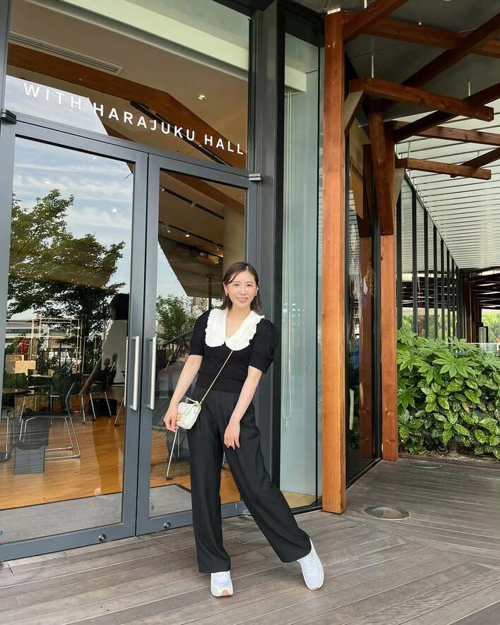 黒いワンピースに白い襟がアクセントとなった大人っぽいコーディネートで、ファッションセンスの高さも垣間見えます。
