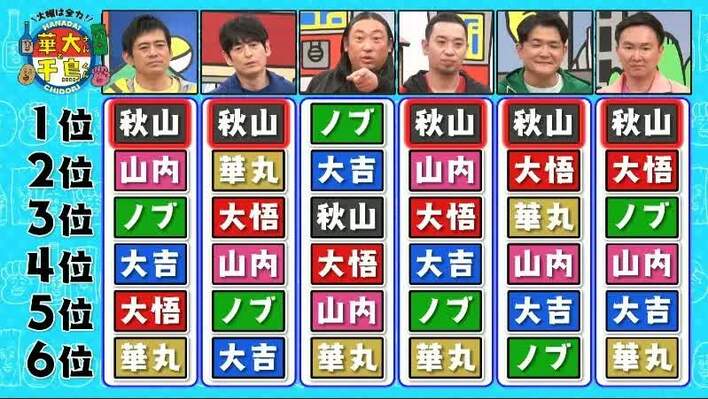 秋山と大悟は上位であるという考えは、みな一致し、残る4位と最下位を山内か華丸か決めることに。