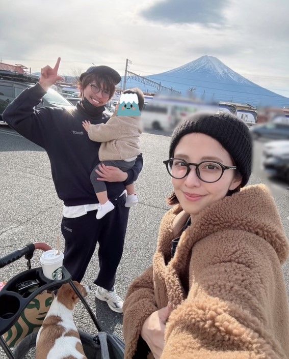 「お正月休みを台無しにしてしまった穴埋めで(富士山の絵文字)を見せてあげました」というコメントとともに、2023年に誕生した第1子を抱き、見事な富士山をバックにカメラを見つめる写真を投稿したりんたろー。さん。