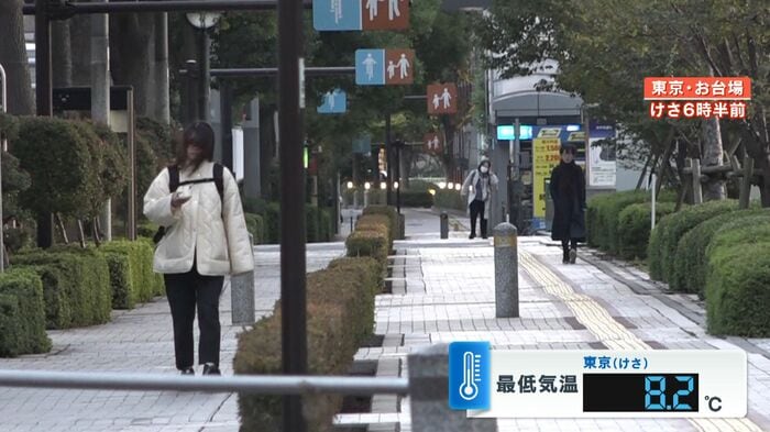 2024年11月8日朝の最低気温が今季初の1桁台となる8.2℃を観測した東京都心。今シーズン一番の冷え込みとなりました。