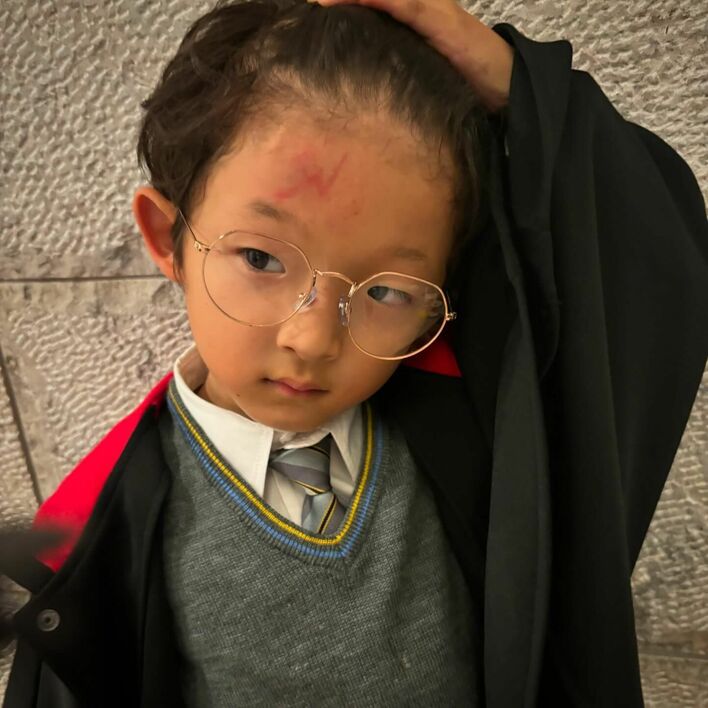 別の写真では、前髪をかきあげた陽喜くんの額にハリー・ポッターと同じ傷が描かれているのがわかります!