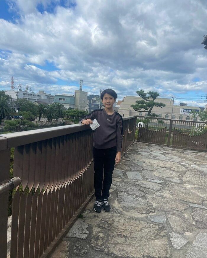 長男の新之助さん(11)とともに、公演のため愛媛県・今治市を訪れていることを明かし、親子ショットを投稿するとファンから多くの反響が寄せられました。