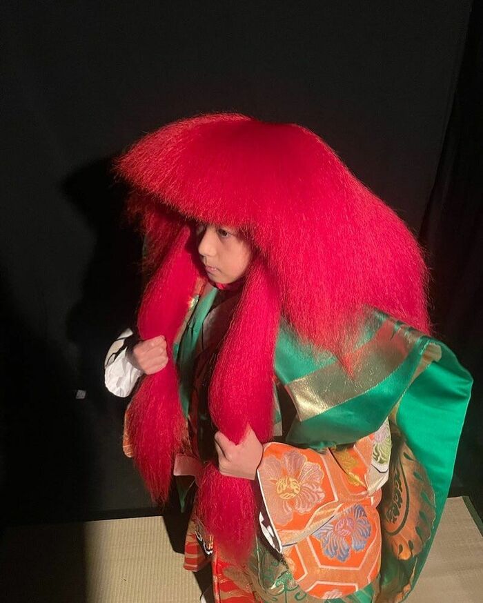 真っ赤なかつらを両手でギュッと握りしめ、一点を見つめる新之助さんからは11歳とは思えない程の気迫を感じます。