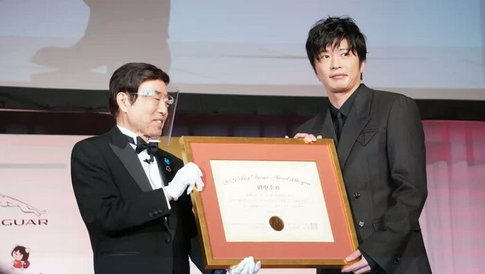 全身黒い衣装で登場した田中は、笑顔でレッドカーペットを歩き、ステージに上がると深く一礼。表彰状とトロフィーを受け取ると、「すごくうれしいですし、刺激にもなります。師走に入って素敵なスタートを切れたのでハッピーだなと思います」とニコリ。