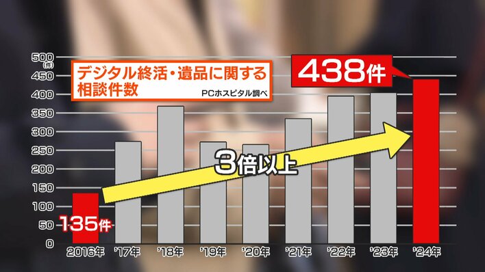 近年「デジタル終活」に関するトラブルが急増。8年間で相談件数が3倍以上に増えています。