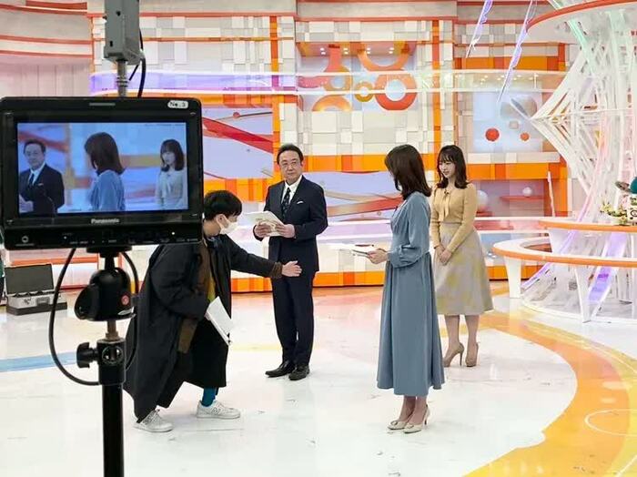 井上アナは“『めざましテレビ』のメインキャスター”という本人役で参加した。11月下旬、この日はスタジオで井上が原稿を読むシーンの撮影日だった。放送が終わると同時にドラマの制作スタッフがスタジオに入り、撮影が始まった。リハーサルで入念に動きを確認すると、メイク担当者が井上アナの前髪のスタイリングを随時直していく。三宅正治アナから「女優だな~」といじられながらも、井上アナは「いつも自分で直すから新鮮です!」と、うれしさ半分、緊張半分という様子だった。
