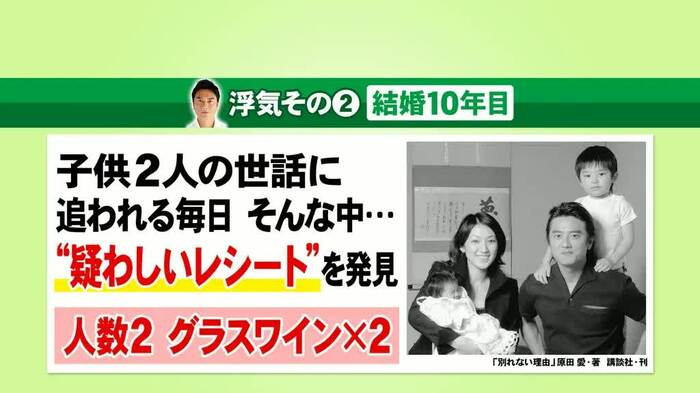 2回目の浮気は結婚10年目のこと。育児に追われていた愛は、お酒が飲めない龍二が「ワイン2杯」をオーダーしたレシートを発見し、彼の浮気を疑うようになったという。