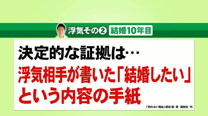 その時はごまかしてた龍二だったが、その後、愛は決定的な証拠を発見。それは相手の女性が書いた「結婚したい」という手紙だった。これにはさすがの愛も「別れましょう」と切り出したが、龍二は浮気を認めた上で必死に愛を引き止めたそうだ。