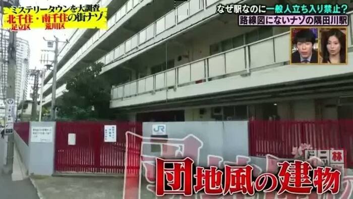 そんな噂を聞きつけ、夏菜とジャングルポケット斉藤慎二がさっそく現地へ向かった。そこには団地風の建物があり、確かに「隅田川駅」と表示されているものの、門は閉ざされたまま。「関係者以外立ち入り禁止」の注意書きが掲げられていた。