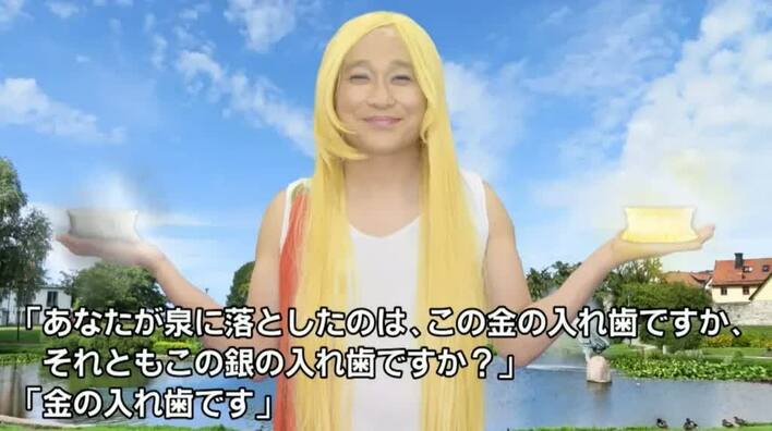 「あなたが泉に落としたのは、この金の入れ歯ですか、それともこの銀の入れ歯ですか?」