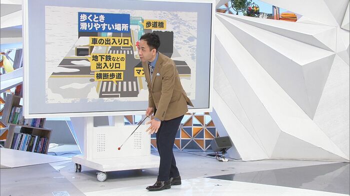 グリップ力の強い靴底のものを選び、ゆっくり歩くことが大切だと思います。