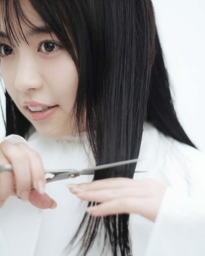 24日までの投稿で、ブラウンヘアを暗髪にイメチェンし、髪の毛束を手に持ち、自らはさみを入れる様子を公開していました。
