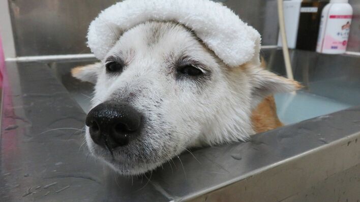 シャンプーをして気持ち良さそうな表情を浮かべるのは、柴犬のククリちゃん13歳。おっとり、マイペースな性格でシャンプーが大好きなんだとか!