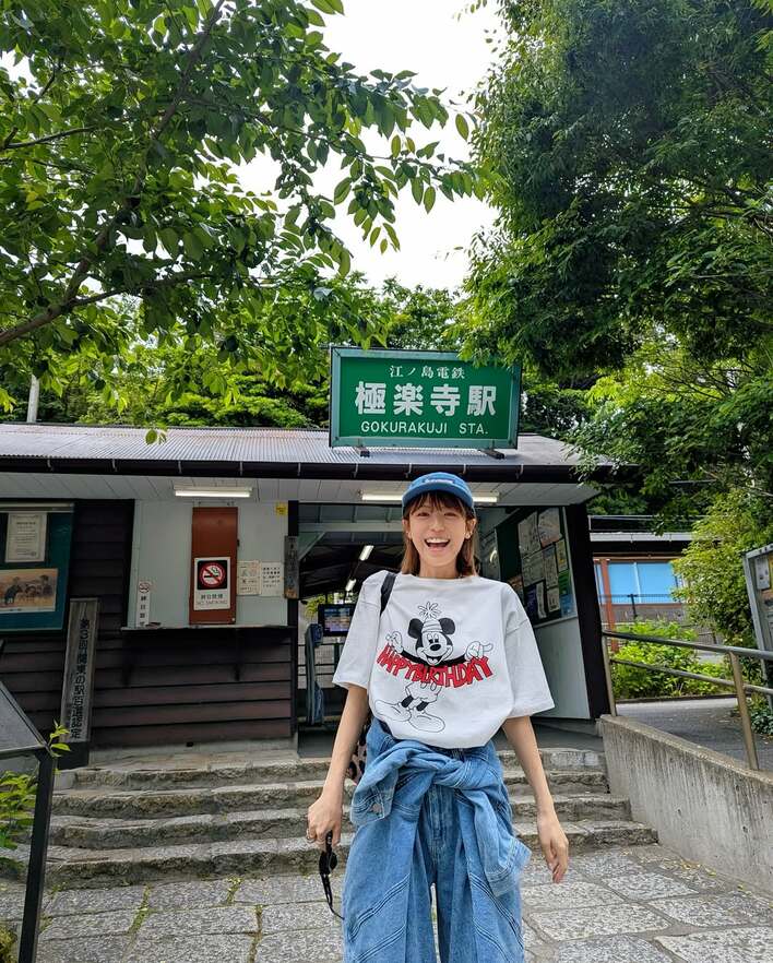 投稿された写真には、ニコッと笑顔で鎌倉大仏と一緒にパシャリ!