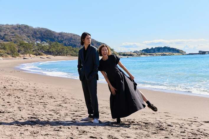 砂浜にスッと立ち尽くし鋭い視線で遠くを眺める長男と、そんな長男に寄り添い大きな口を開け自然体な笑顔をカメラに向けるRIKACOさん。高身長のRIKACOさんですが、そんなRIKACOさんよりも長男はさらに大きいことが伺える2ショットになっています。