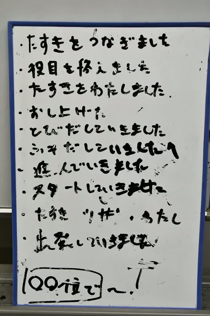 たまに噛んでしまったが、実況で使われる言葉を必死に頭に叩き込んでいた。そこで発見した「よく使われる言葉のパターン」はミニホワイトボードにメモ。これをそばに置いて練習すれば安心!というわけだ。