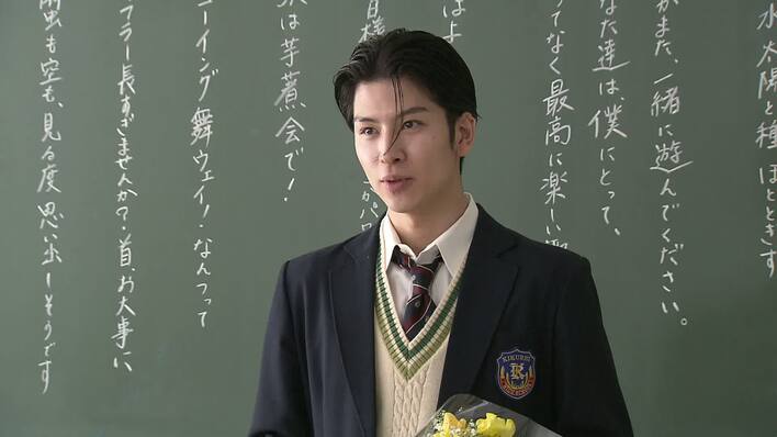 4ヵ月、長いようで短かったです。この業界でなかなか青春を感じることがありませんでしたが、この現場で高校3年間ぐらいの青春を味わうことができました。森戸朋也は、もともと陰キャで、そこからあか抜けていく役どころで、自分と通ずるところもありました。この役に出会えて自分自身が変わることができましたし、努力する大切さを学び、森戸と一緒に成長できました。ありがとうございました。