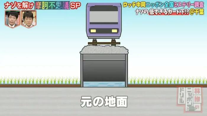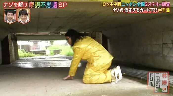 続いては、千葉県市原市にある低すぎる電車のガード下を、中岡創一がリサーチした。線路の下の通路は高さ117cmしかなく、大人が立って歩くのは少々厳しい。