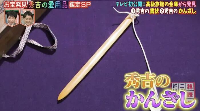次は、小さい方の木箱の中身をチェック。中から現れたのは、秀吉がつけていたと言われるかんざしだ。当時は、冠を被った時にマゲを固定するために、男性もかんざしを使っていたという。