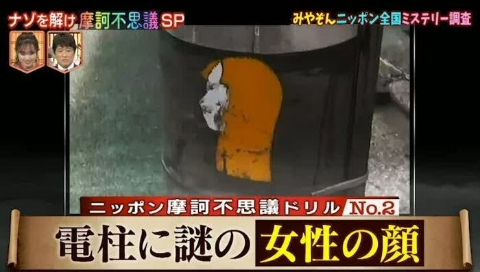 「目を疑う摩訶不思議ドリル」で、みやぞんが調査したのは、東京都練馬区の商店街のナゾ。 上石神井駅から住宅街へ向かい歩いていると現れるのが、電柱に貼られている、女性の顔。