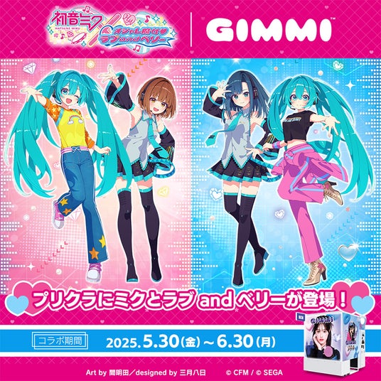 セガグループの株式会社セガ フェイブ(本社:東京都品川区、代表取締役社長執行役員:杉野行雄)は、好評稼働中のプリクラ機『GIMMI(ギミ)』にて、本日2025年5月30日(金)より「初音ミク×オシャレ魔女 ラブ and ベリー」とのコラボイベントを開催いたします。